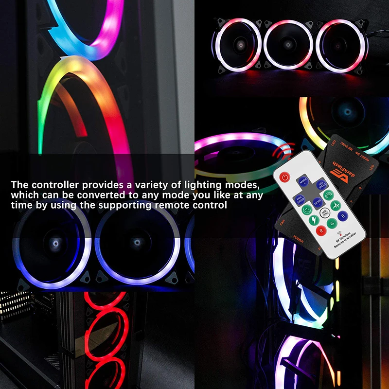 ALSEYE D-Ringer Series 120mm LED Computer Case Fan Adjustable RGB and Fan Speed Remote control support Asus 5v 3pin and Gigabyte