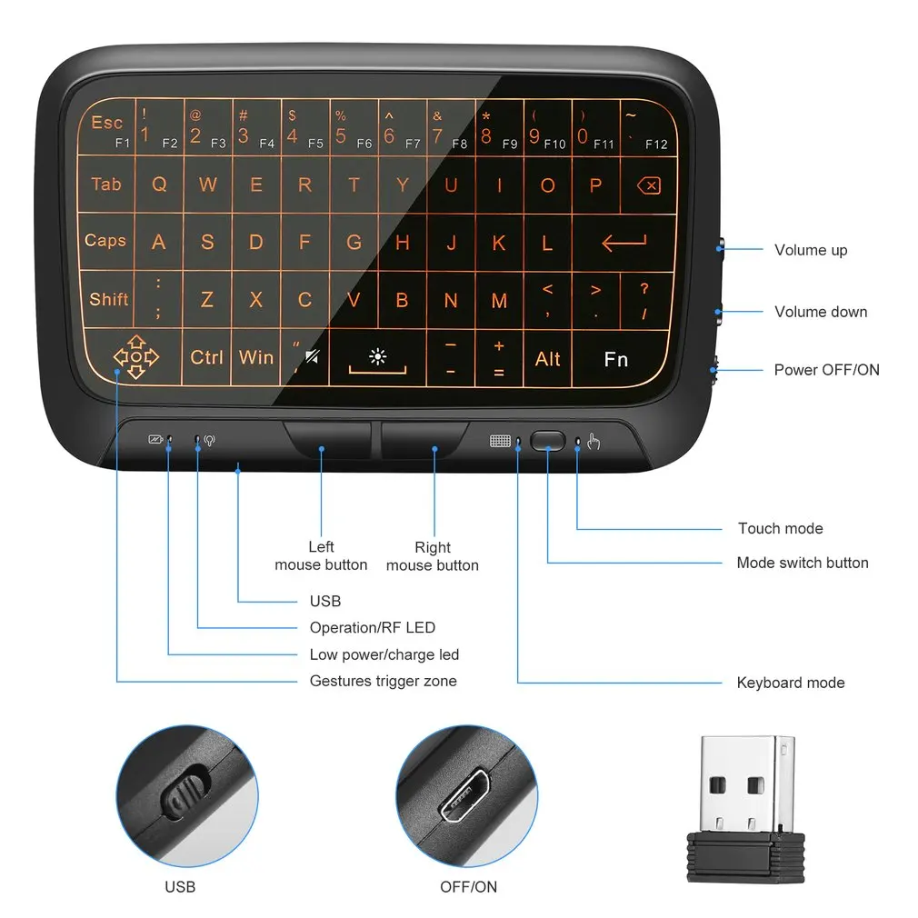 H18+ Mini Wireless Touchpad Keyboard 2.4GHz Full Panel Touchpad Gaming Mouse for Android TV Box PC Laptop Smart TV