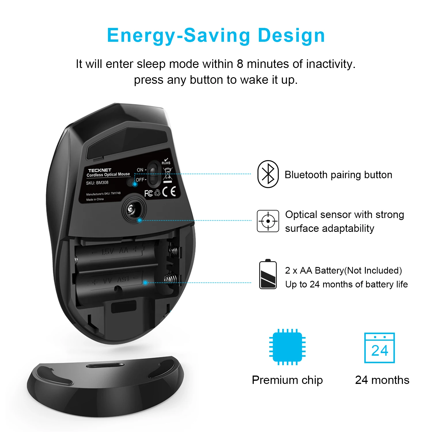 TeckNet 3.0 Wireless Mouse Computer Bluetooth Mouse DPI 800/1200/1600/2000/3000DPI For Laptop Notebook PC Computer