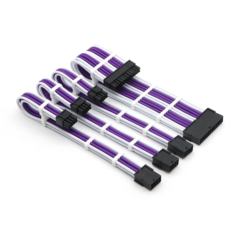 | 180 Degree Extension Cable Kit - PC Computer ATX 24Pin, EPS 4+4Pin, PCI-E 6+2Pin, PCI-E 6Pin Power Extension Cable. |